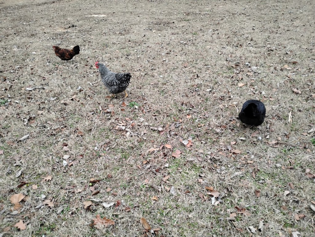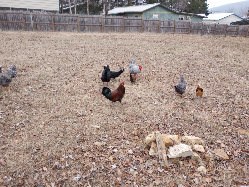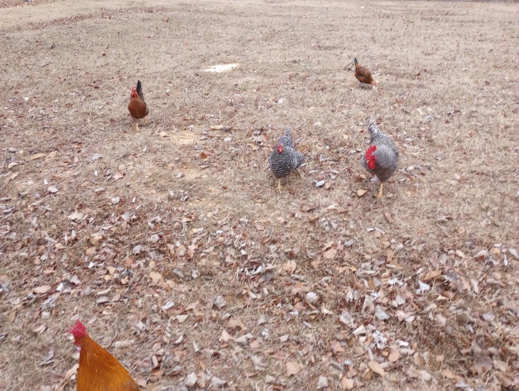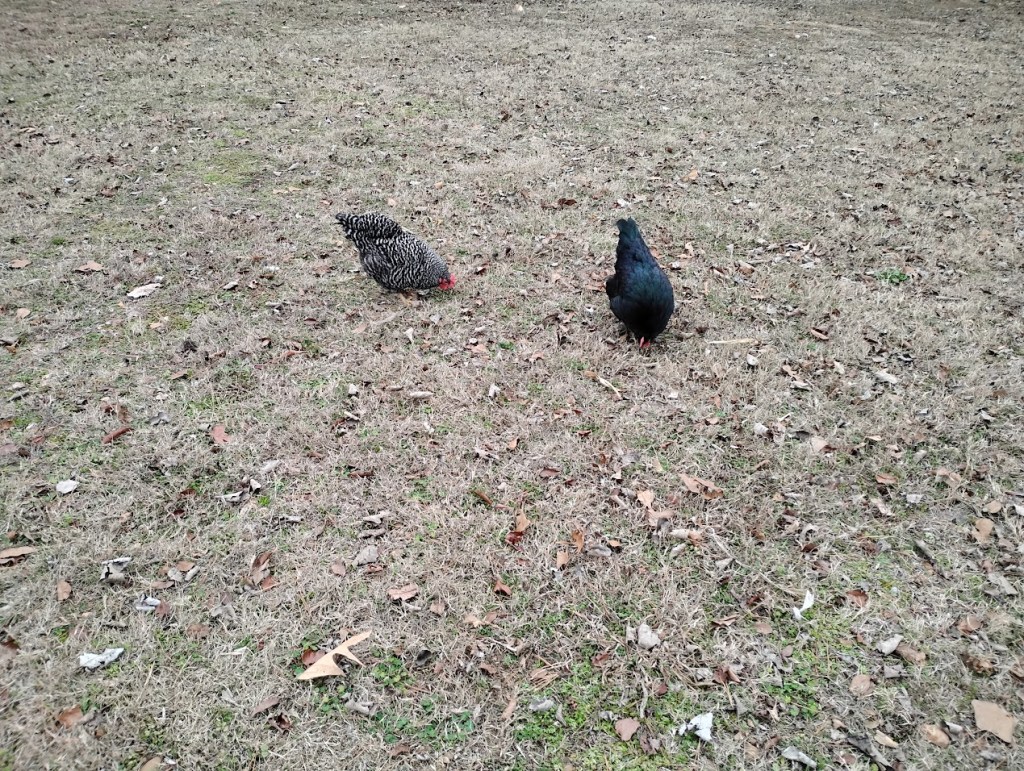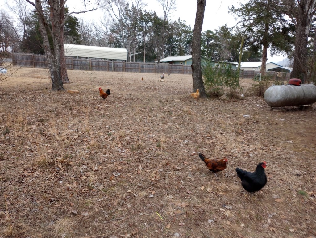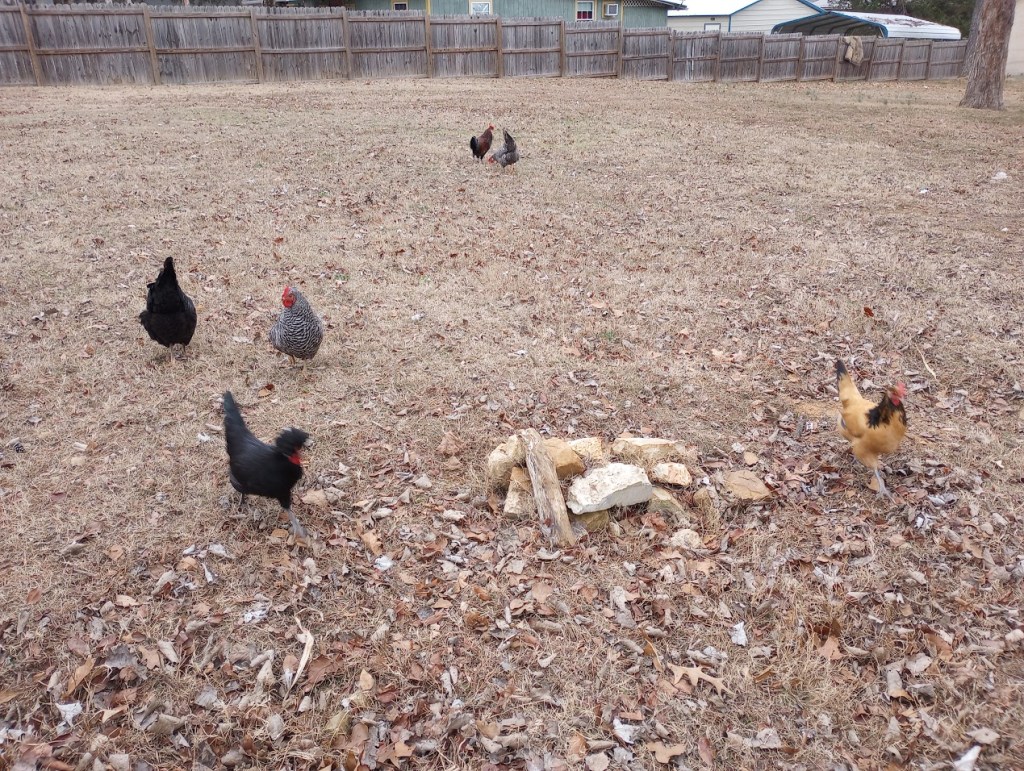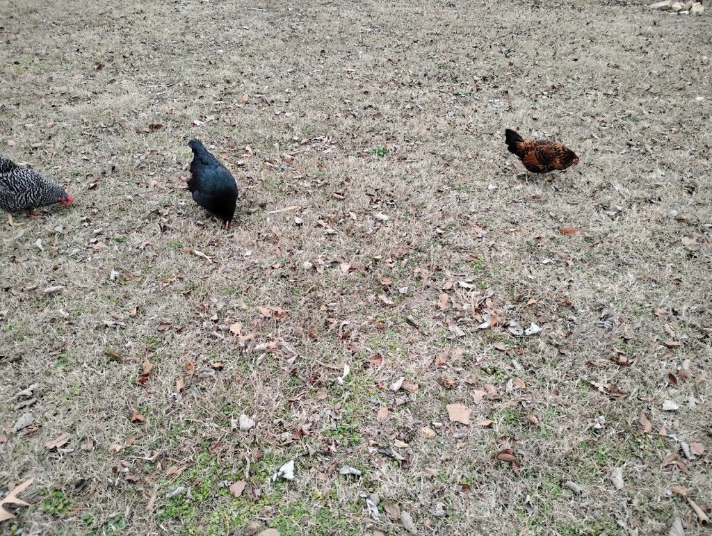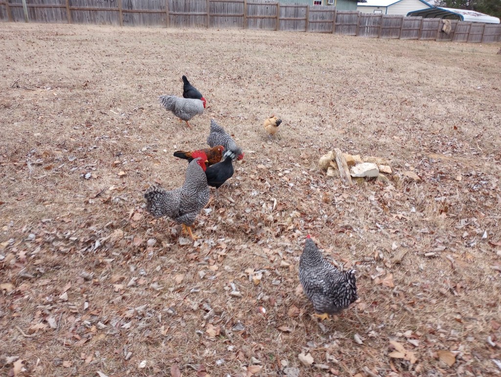 Chickens free range all day.