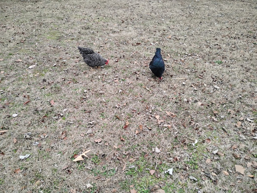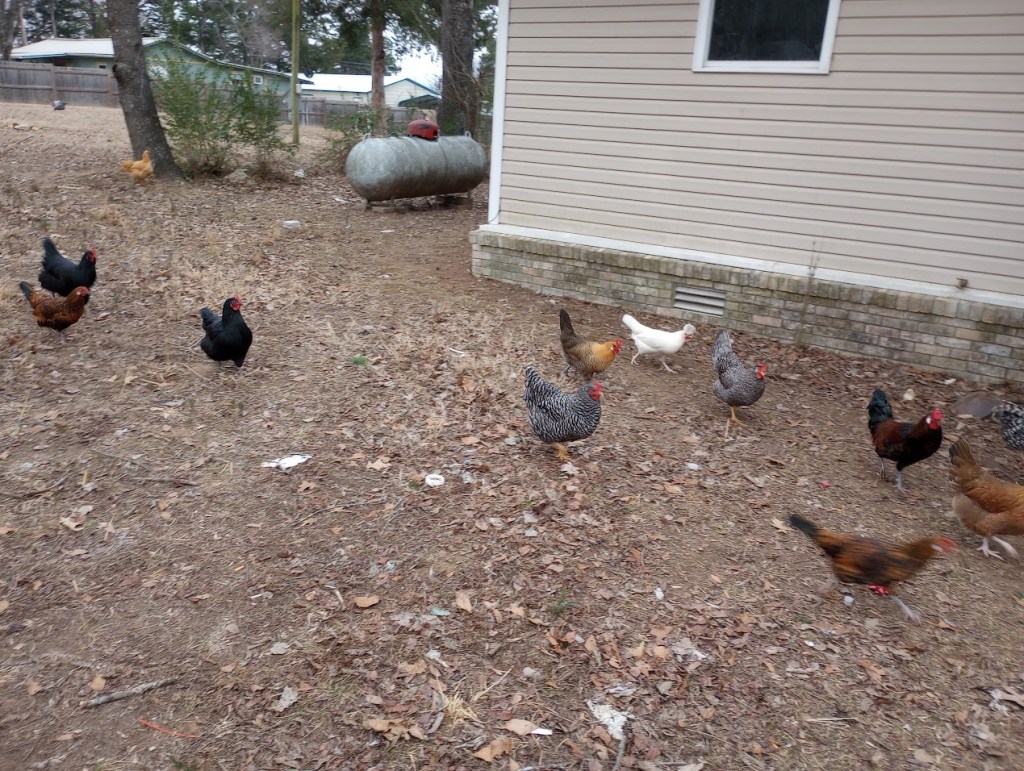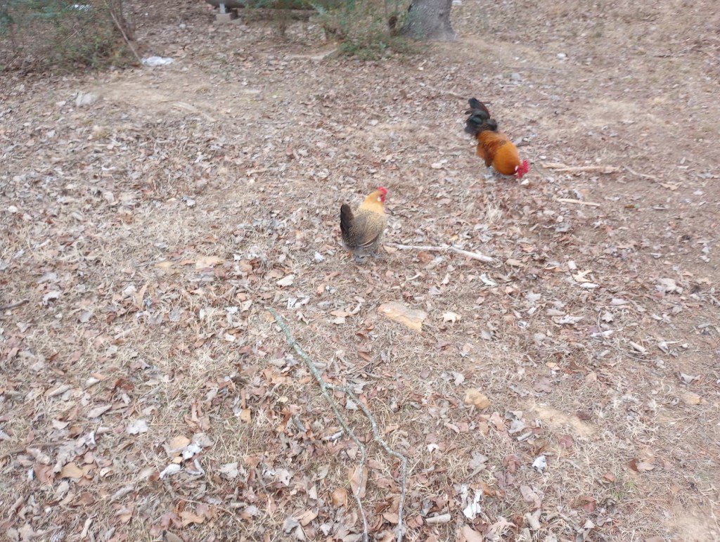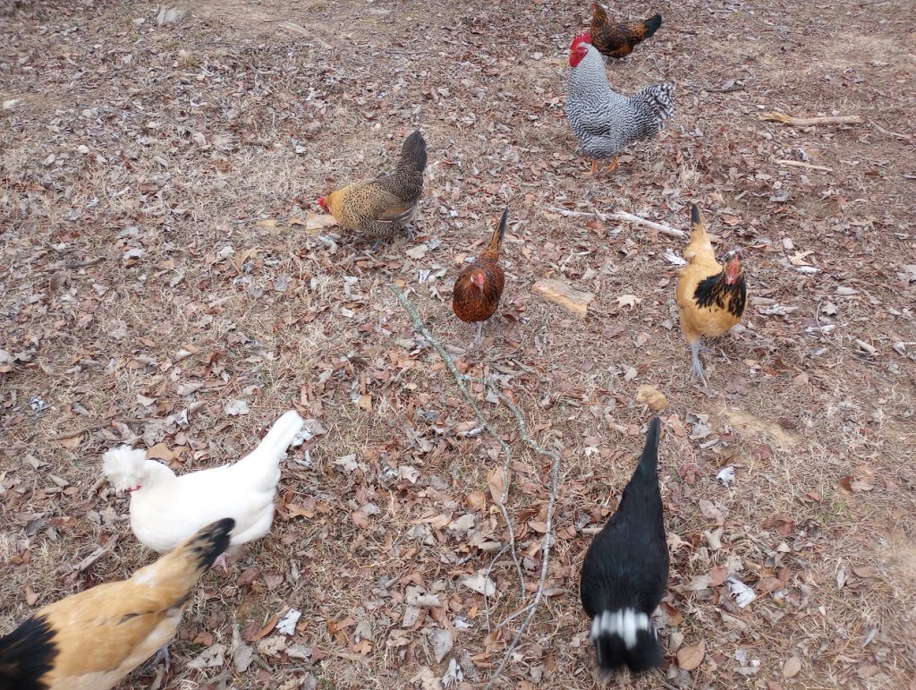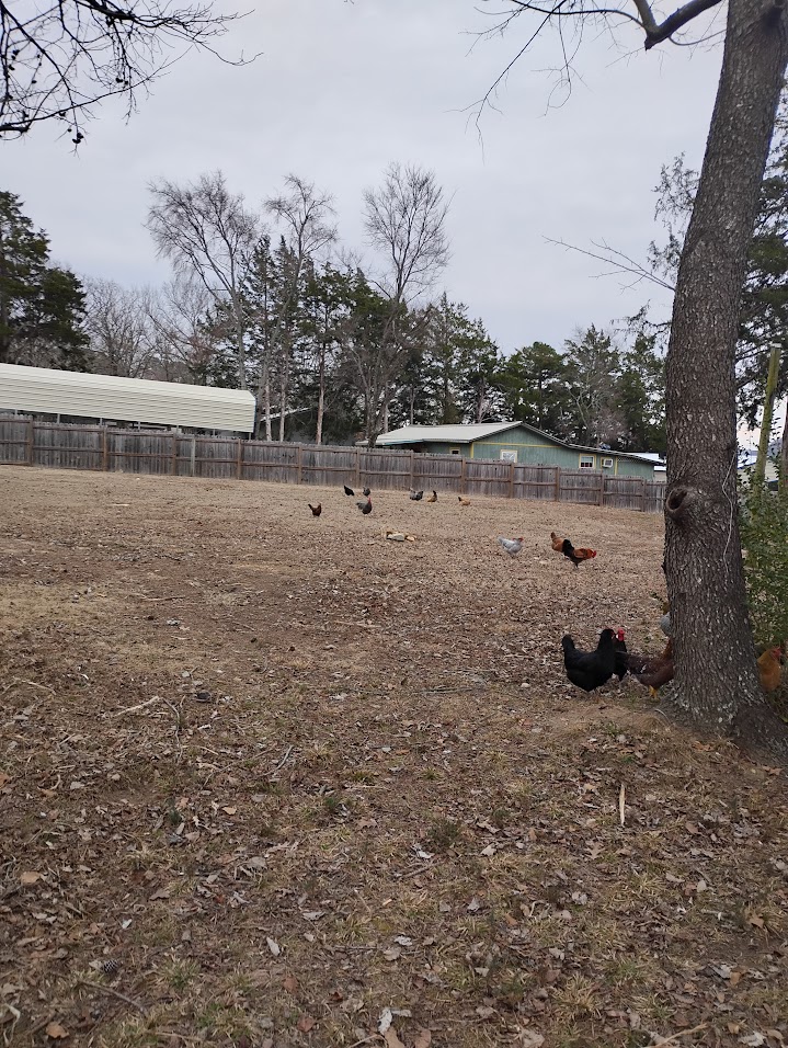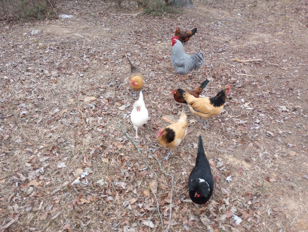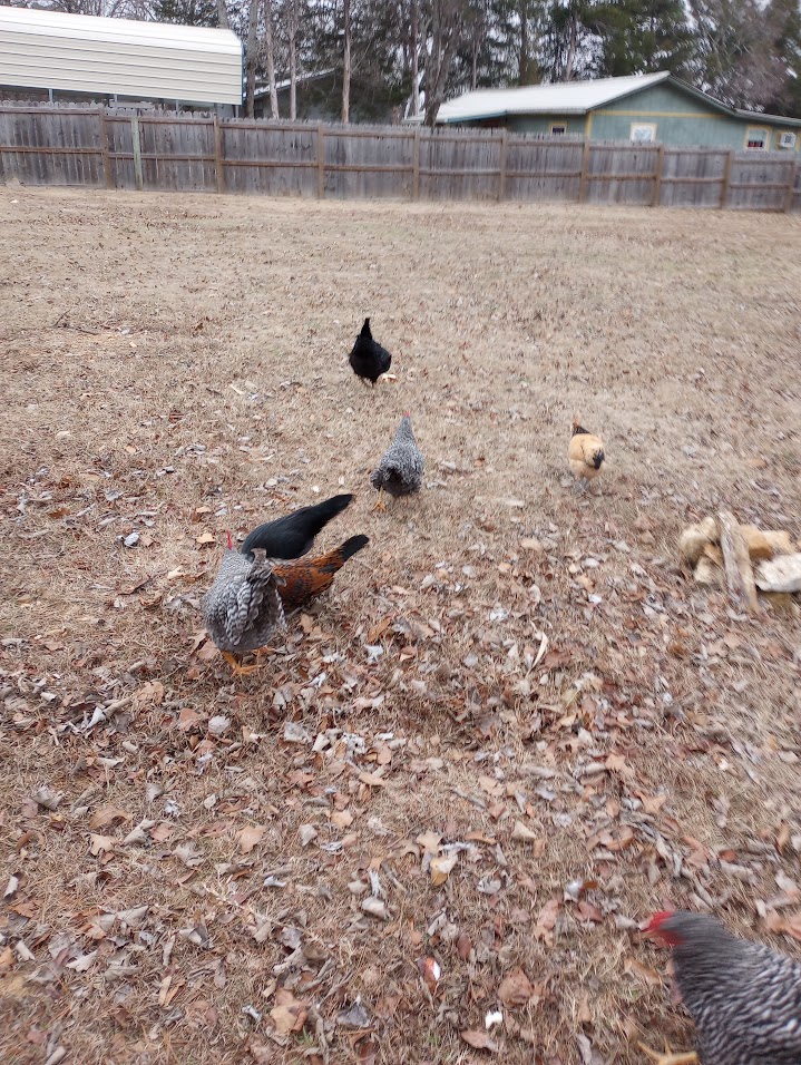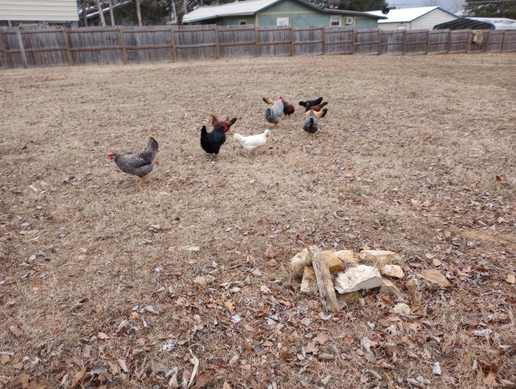 Chickens free range all day.