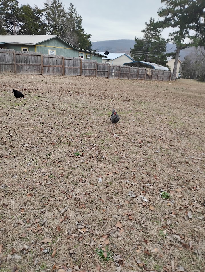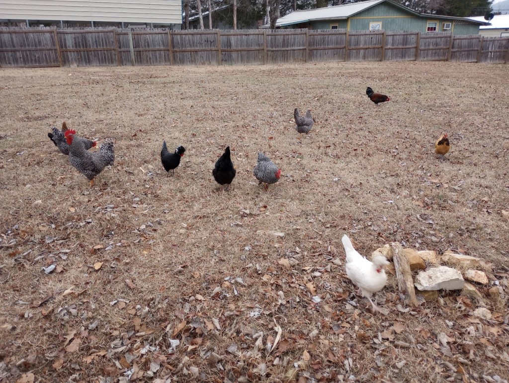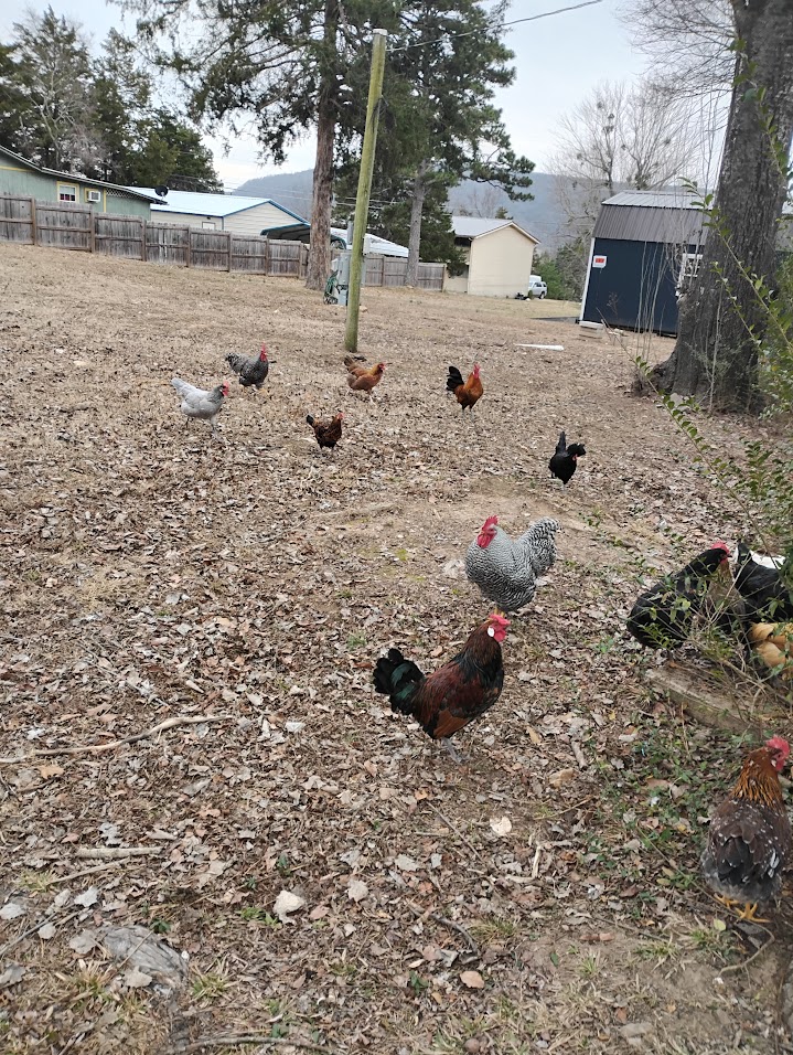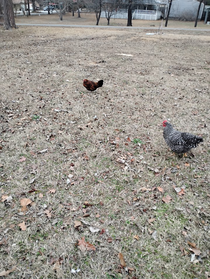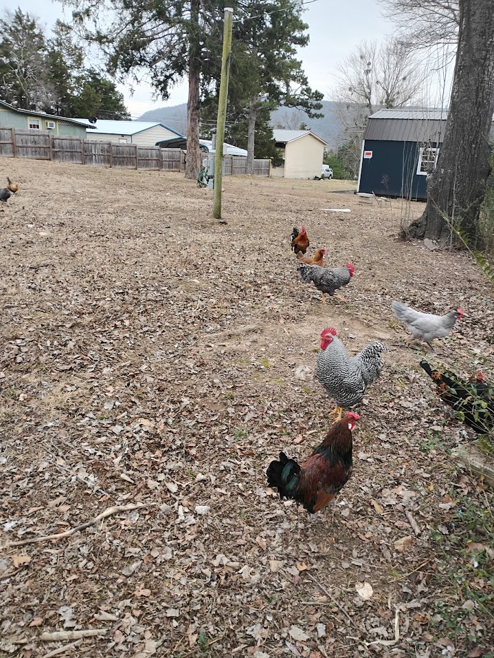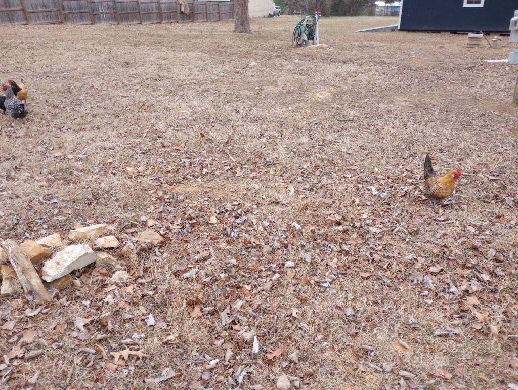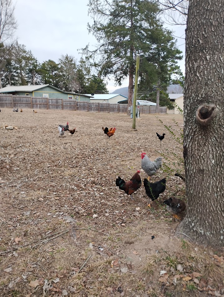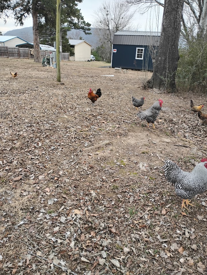 Chickens free range all day.
