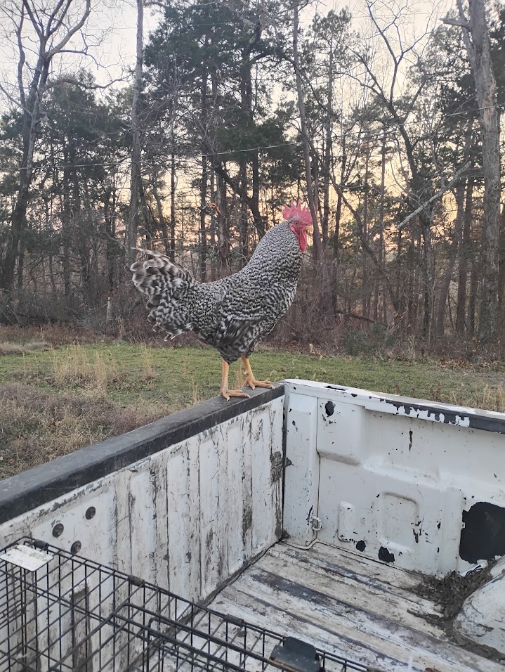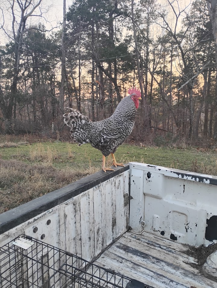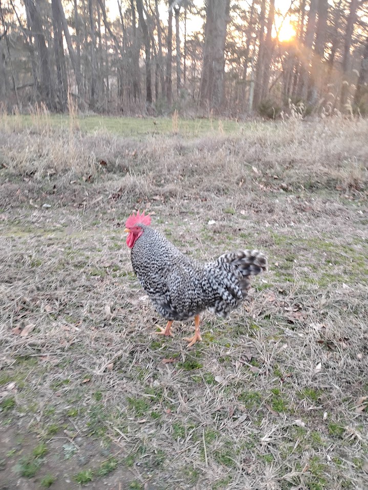Pictures below are our Sicilian Buttercup and Barred Holland Roosters. Both are rare. The Sicilian Buttercup was a show bird before he was attacked by another rooster.