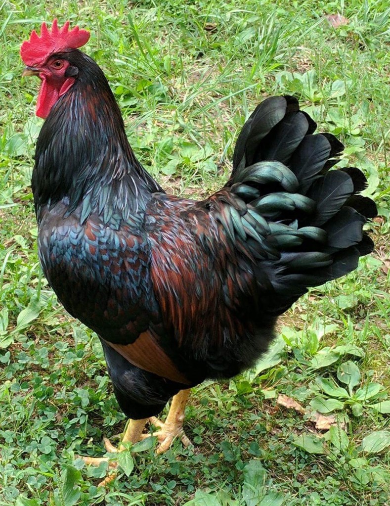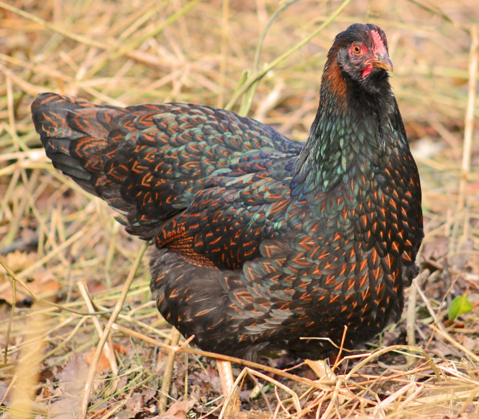 In case you didn’t guess it, Cubalaya chickens originated from Cuba (and possibly the Philippines before that). They are ornamental birds laying around 150-200 small to medium cream color eggs per year. They grow slow and might not reach maturity for a few years. The hens go broody and make great mothers. They come in three varieties: black, black-breasted red, and white. Ours do well in the heat and we have never lost one due to hot weather–even in extreme Arkansas hot weather. Ours love to forage. They are small and need to be protected from predators.