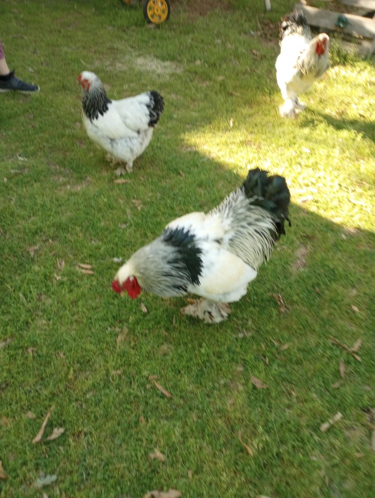 Cubalaya’s are supposedly multi purpose meaning they can be used for meat, show, eggs, and fighting. I am not sure that I agree with that considering ours are very calm, never aggressive, low egg producers, and appear to have very little meat on them.